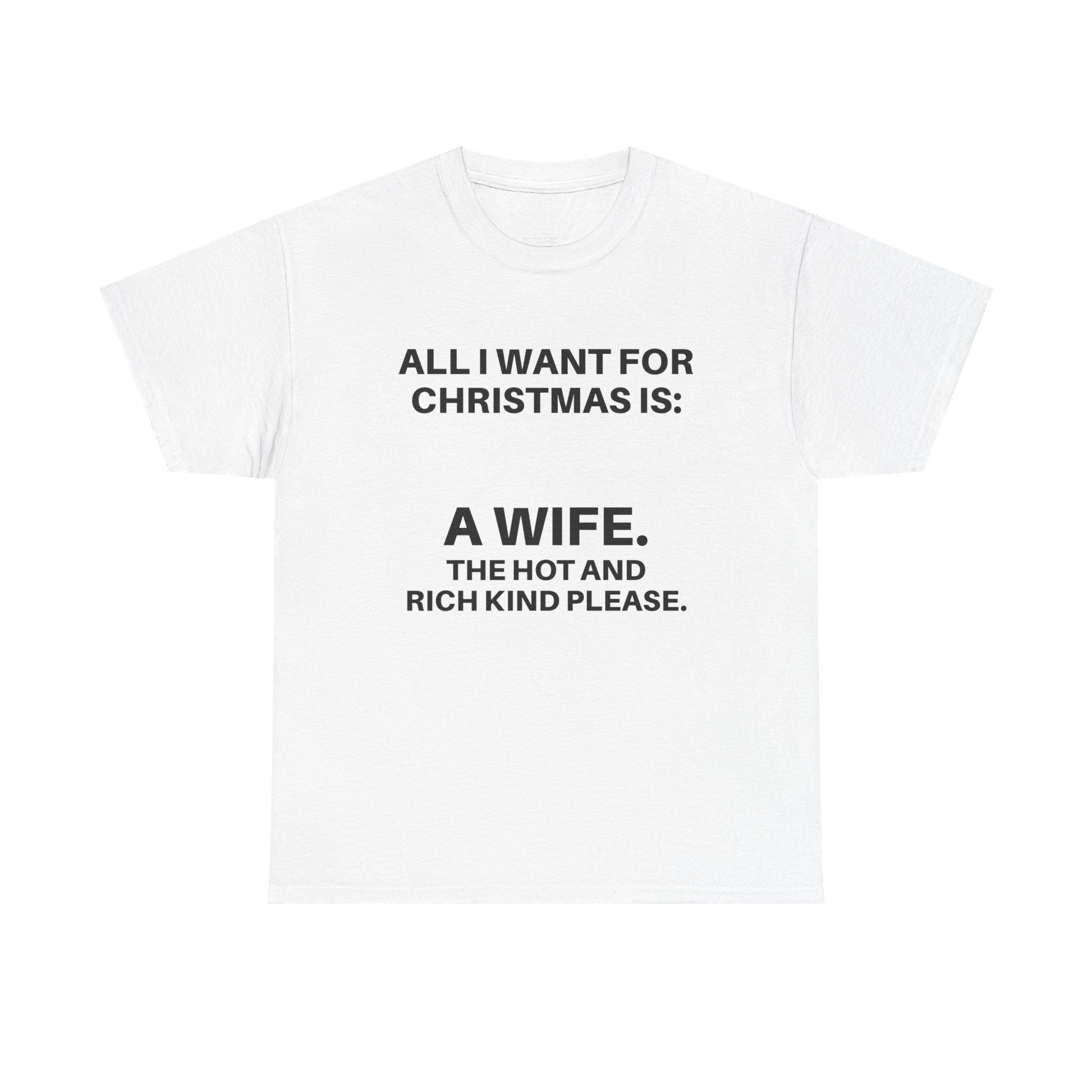 Funny Christmas Tee: 'All I Want for Christmas Is A Wife' | Gifts for Him, Holiday Humor Shirt, Unisex Cotton T-Shirt, Fun Festive Apparel